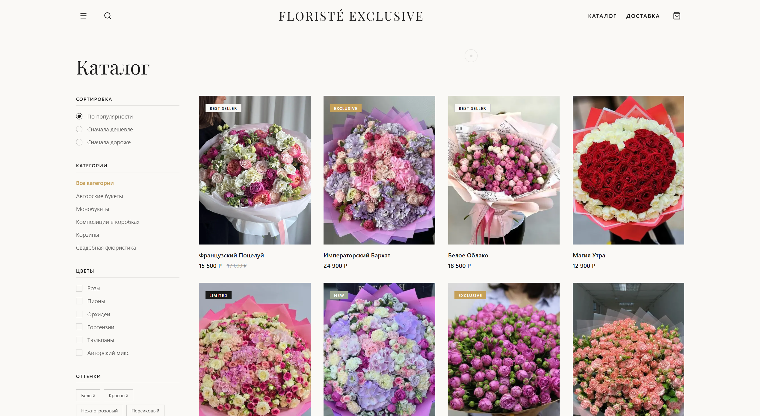 Floristé Exclusive — Система по онлайн продаже цветов