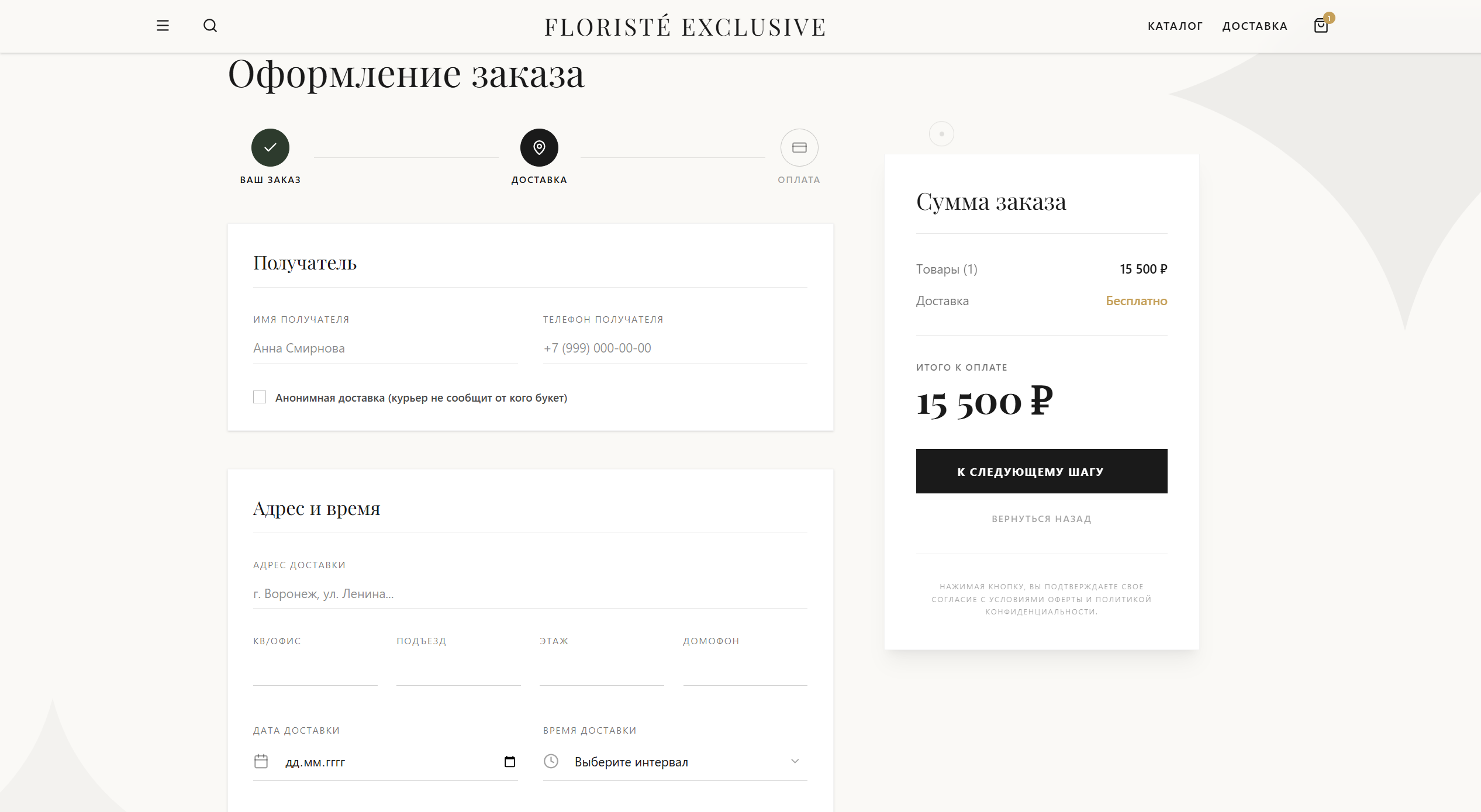 Floristé Exclusive — Система по онлайн продаже цветов