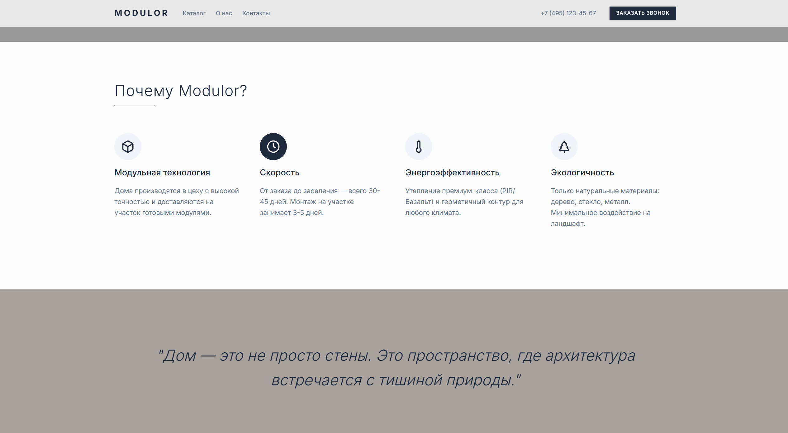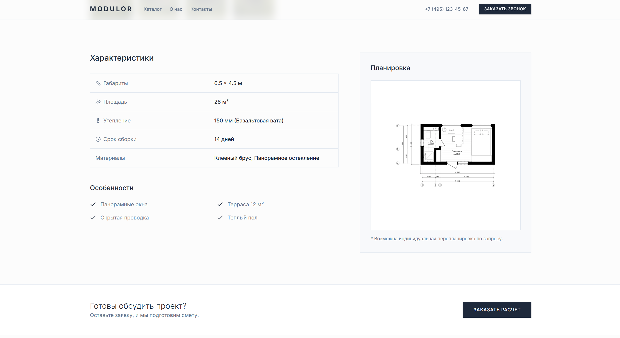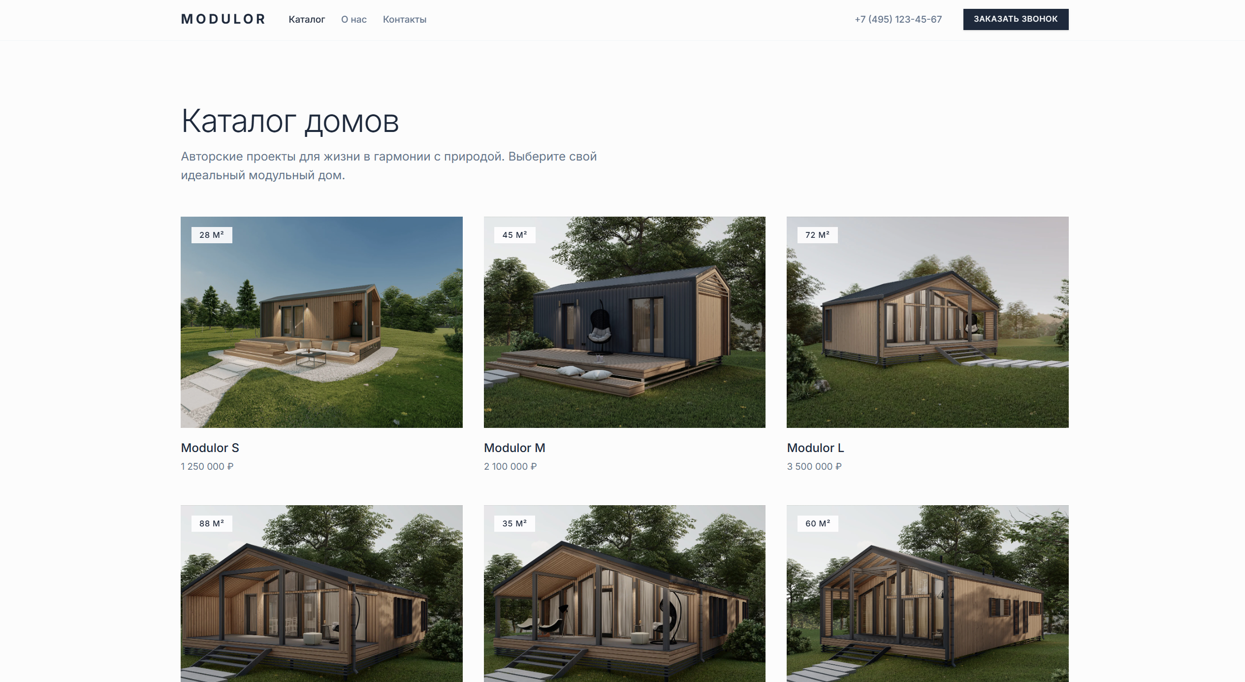 Разработка высококонверсионного лендинга для завода модульных домов. Проект оптимизирован под запуск трафика из Яндекс.Директ: проработанные офферы, каталог с планировками и мульти-степ формы захвата.